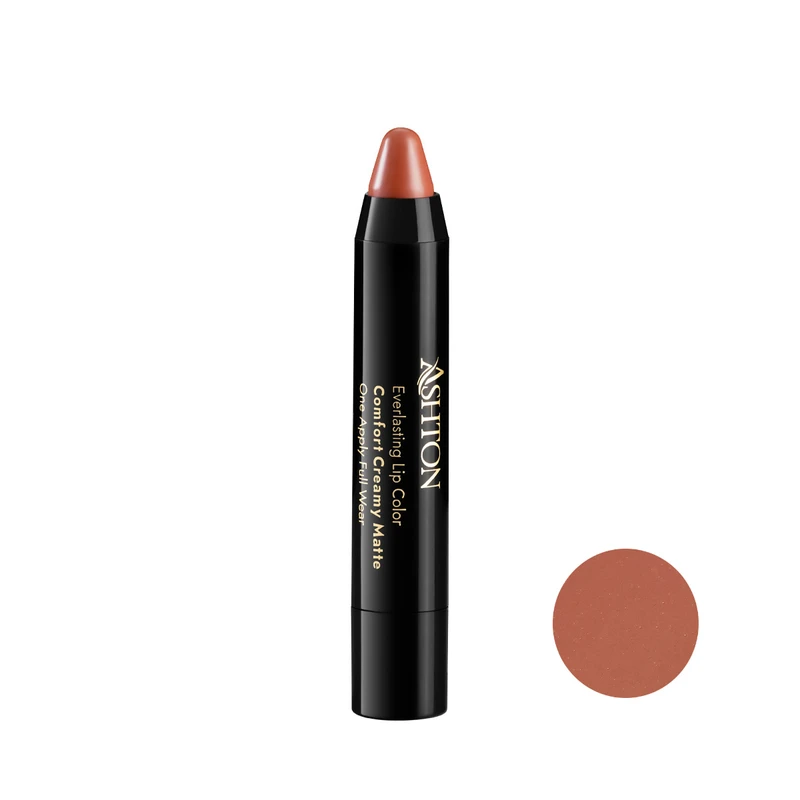 رژ لب مدادی اشتون شماره 03 مدل مات مخملی با فرمول کرمی، کاملا مات و ماندگاری بالا همراه با بافت سبک و مخملی خود، پوششی صاف و یکدست را به لب ها می بخشد. استفاده از مواد اکتیو در فرمولاسیون این محصول همانند عصاره دانه کرنبری به عنوان یک آنتی اکسیدان قوی به همراه ویتامین E و معجزه هیالورونیک اسید که یک آبرسان بسیار قوی می باشد مانع از خشکی لبها و حفظ رطوبت آن ها می شود، همچنین از ترک خوردن و چروک لبها جلوگیری می نماید – بدون نیاز به تراشیده شدن ، کافیست قسمت انتهای رژلب را بچرخانید تا مقدار بیشتری از رژلب بیرون بیاید.